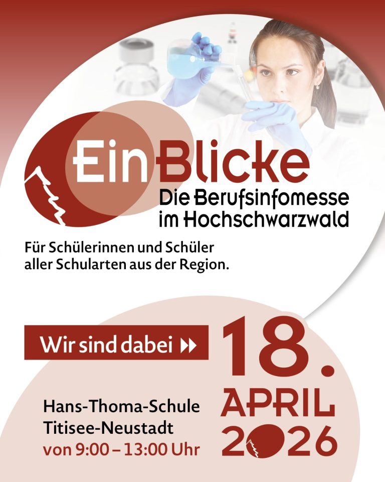 Die Berufsinfomesse EinBlicke bietet Schülerinnen und Schülern aller Schularten die Möglichkeit, regionalse Ausbildungs-, Studien- und Praktikumsmöglichkeiten kennenzulernen - praxisnah und im direkten Austausch mit Auszubildenden, Studierenden und Ausbildern.